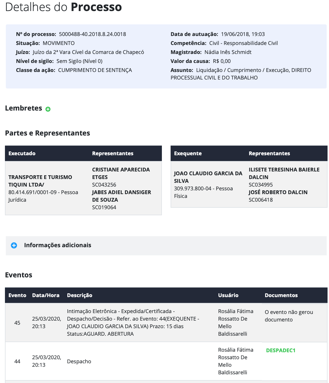 Ao clicar no CNJ do processo, você tem acesso a todos dados, eventos, documentos, etc.